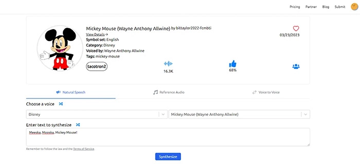 Now check how to use this app to clone Mickey Mouse voice easily.