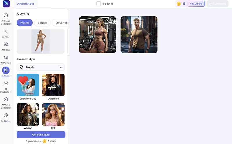 - Choose from many preset styles like superhero, doll, fantasy, anime, and so much more.