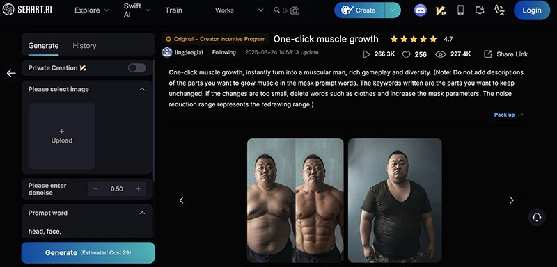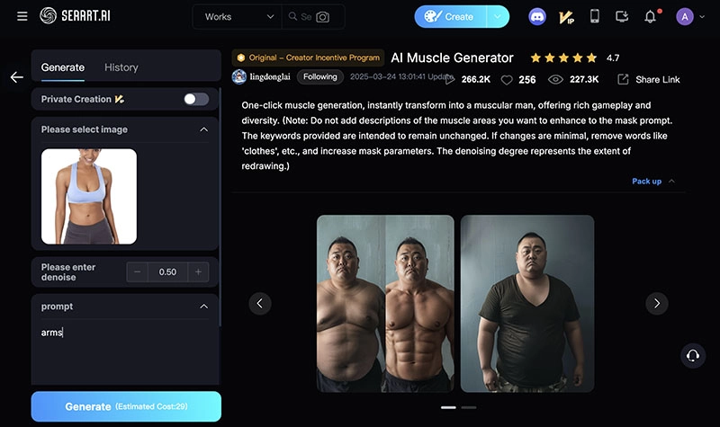 SeaArt AI Muscle Generator: Add Abs to Photo Online Free with Prompts