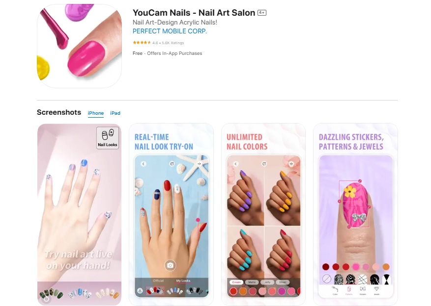 YouCam Nails is a nail color changing app designed to help you experience different nail styles. You can change the color and style of your nails in seconds with a huge selection of colors. Use the model hands provided in this app without having to take a photo of your hands directly and get results in real time.