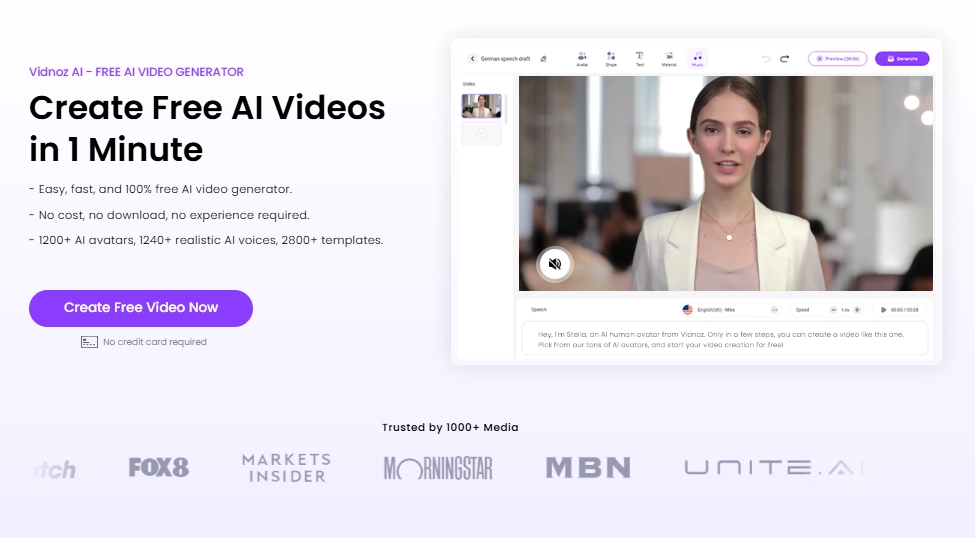 With Vidnoz AI, you can make your avatar speak, cheer, and even get emotional. It offers pre-made video templates that let you skip the editing hassle and jump straight into the fun part! With customization options like voice, and emotion, easily creating an engaging cheering video is a breeze, let’s blitz now: