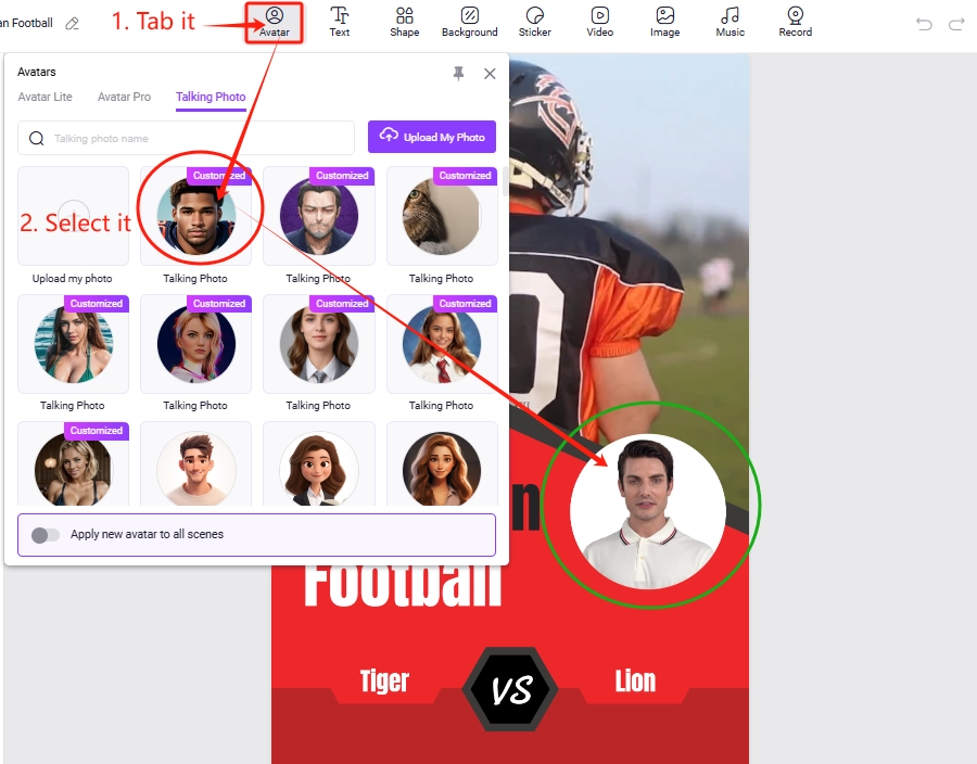 Step 4. Apply Your Speaking NFL Avatar into the Cheering Video