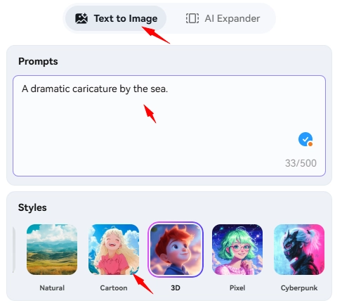 Here’s how to customize your caricature with creative prompt online on Media.io.