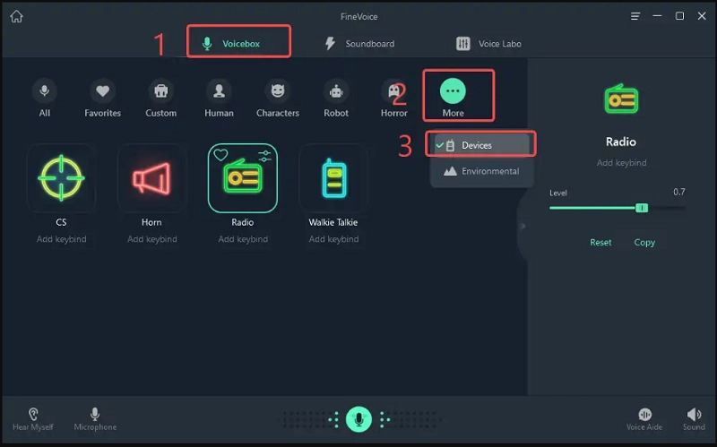 A product of FineShare, FineVoice is an impressive radio voice changer that also allows you to create radio voice for your videos, podcasts, and games. This real-time voice changer also comes with a built-in voice recorder. You can also use it to convert your text to speech and vice versa. With FineVoice’s Voice Labo, you can create a custom voice with radio effects using 28 different voice metrics.