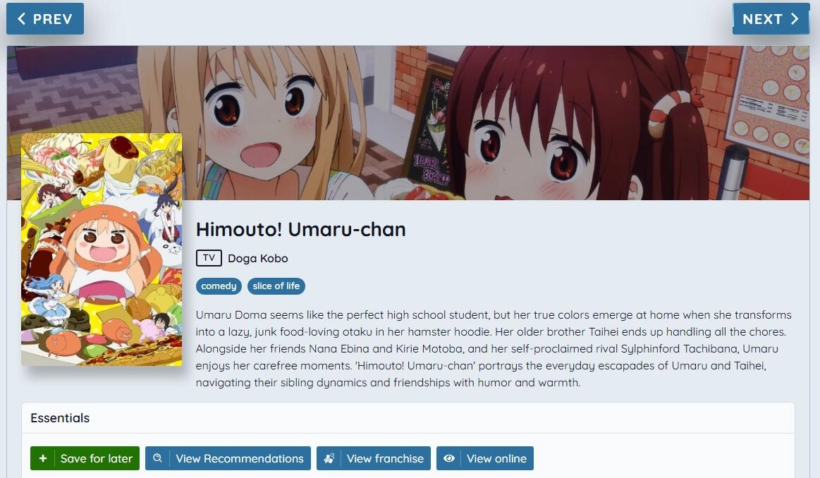 - Provide similar anime shows of the generated result in case you want more in the same genre/topic.