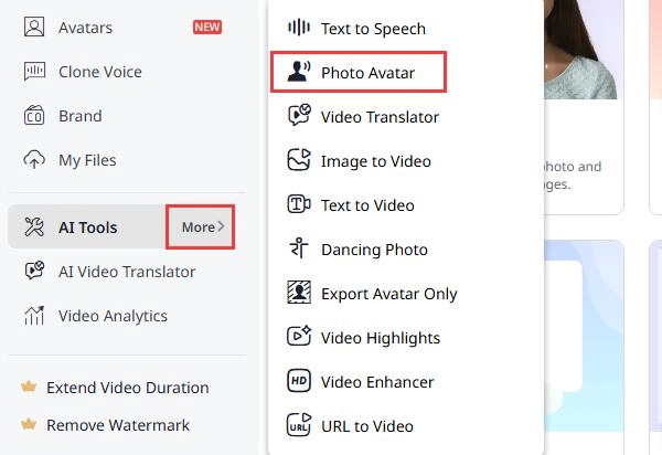 Step 2. On the left toolbar, find AI Tools > More > Photo Avatar.
