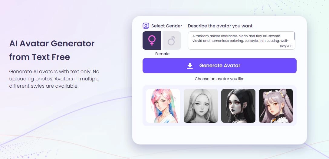 If you are looking for a random anime PFP generator to create profile pictures and avatars for your social media accounts, then Vidnoz AI avatar generator will be an ideal and eligible tool for you.