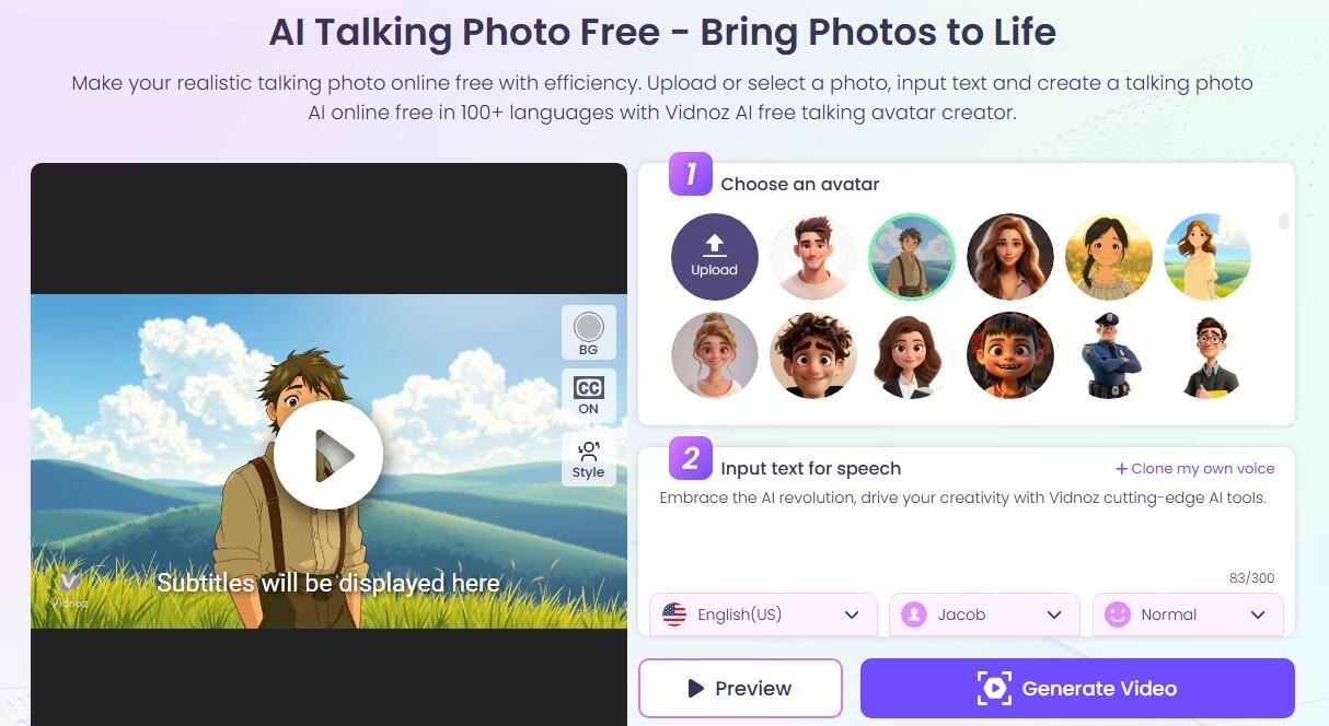 Have you tried the above random anime character generators to create a character? Have you ever thought of turning them into a moving animation like the anime you watched? Look into the talking photo AI brought by Vidnoz, it won’t let you down.