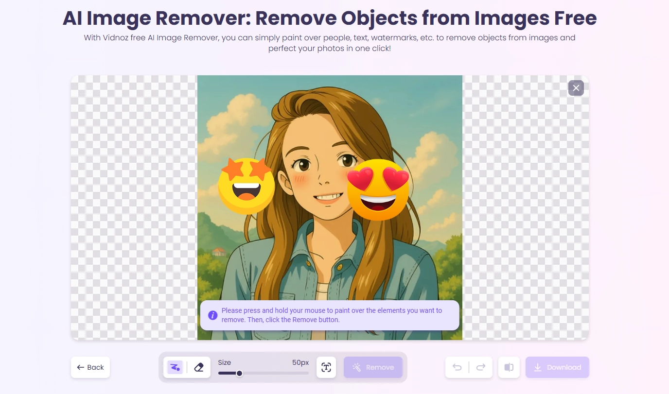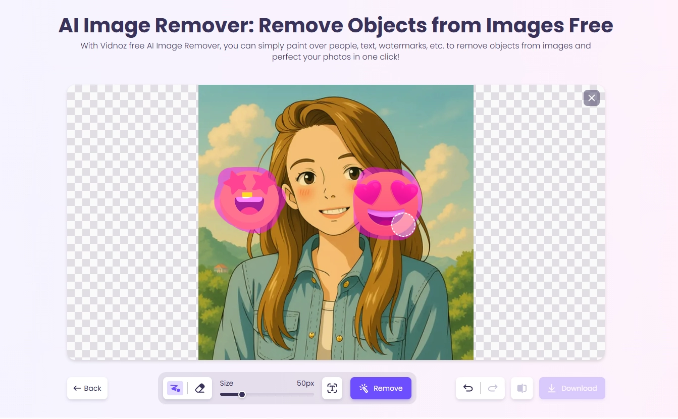 Vidnoz AI Girl Face Emoji Remover Online
