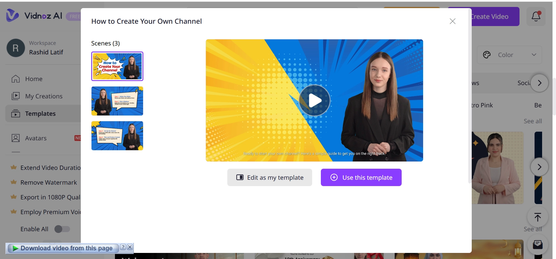 Select a generic “Tutorial/How-to” template from Vidnoz’s library. These templates are designed for instructional content, making them ideal for adapting to sign language lessons.