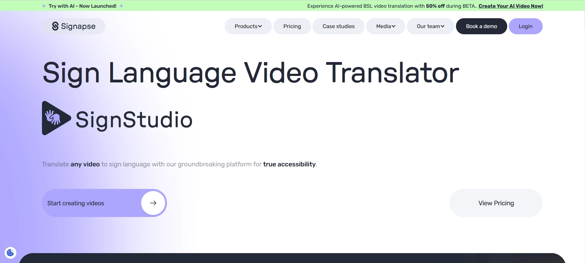 Signapse AI is a flexible tool for translating sign language videos for British (BSL) and American Sign Language (ASL). Its easy-to-use interface lets anyone easily resize the signer, which works well for training videos or corporate educational modules. It offers tiered pricing plans that are suitable for both individuals and enterprises. Teachers use it to interpret lectures into ASL/BSL, and companies use it for meetings and deaf-inclusion. The tool’s AI helps ensure that gestures and facial expressions appear natural, as it fills in the gaps in communication with incredible convenience. Moreover, it supports batch processing and multi-format exports.