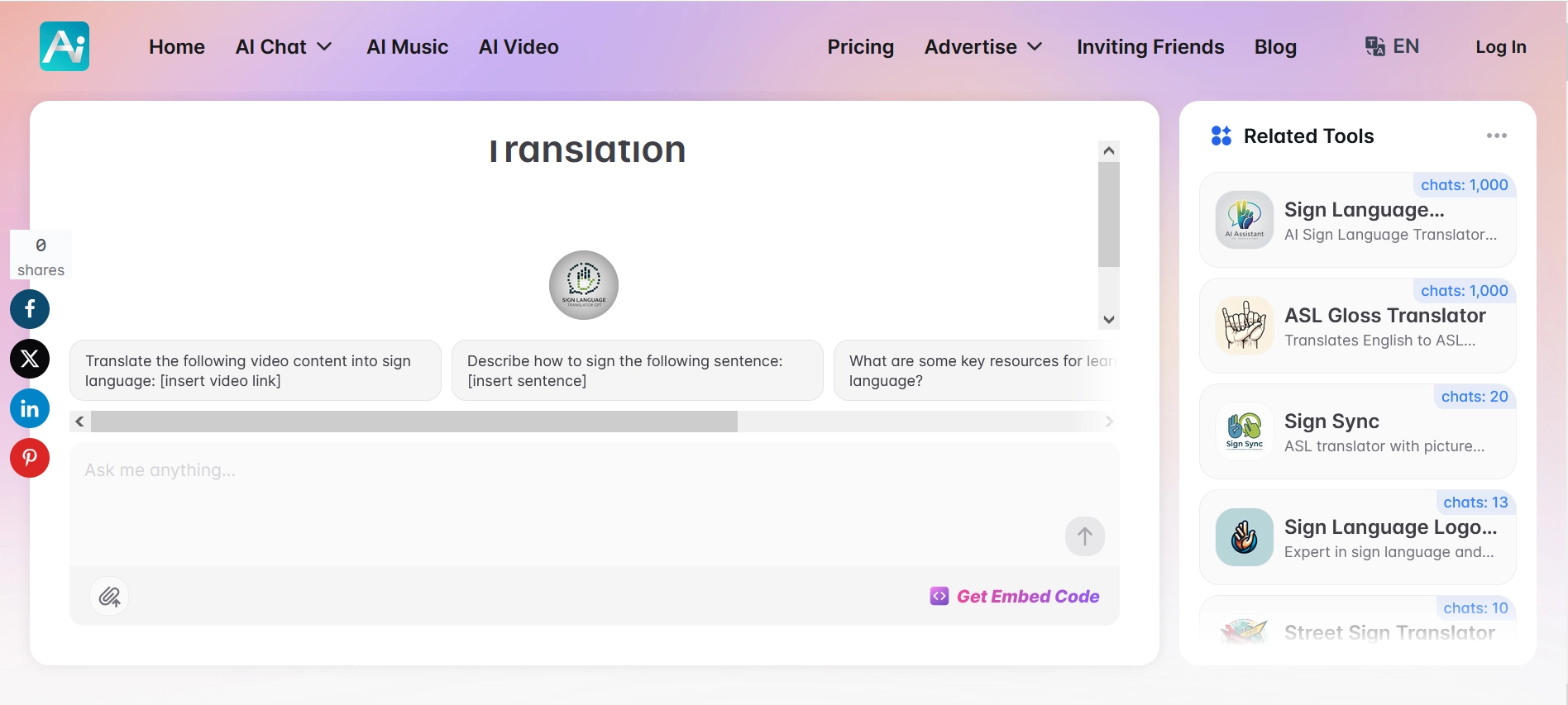 YesChat.ai makes sign language translation a breeze with its chat-based interface — just sign in and start typing. Users enter a text or upload an audio file and, within no time, the AI produces sign language videos. Great for casual use, it also supports ASL and connects with other AI tools such as text-to-speech translators. Students seek it for quick help with homework, and professionals use it to make bite-sized training snippets. The system has an AI translator and even converts emoji-to-sign, bringing fun to learning. It’s fast and light enough to be your go-to for on-the-spot translations.