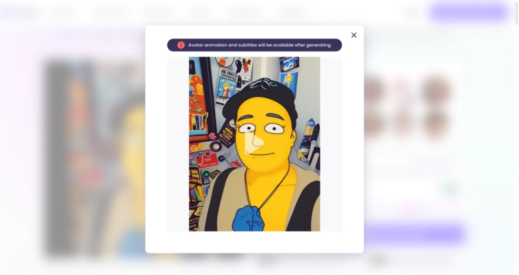 Step 5. After you click on the Generate Video option, it will lead you to create an AI Simpsons talking avatar from the image.