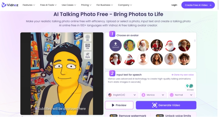 Once you've created your AI Simpsonized character with the above AI Simpsons filters, why not take it a step further for fun? Vidnoz AI Talking Photo lets you animate your AI Simpsons character by making it speak like a real man! With advanced Vidnoz AI technology, you can create high-quality talking videos from static images in seconds.