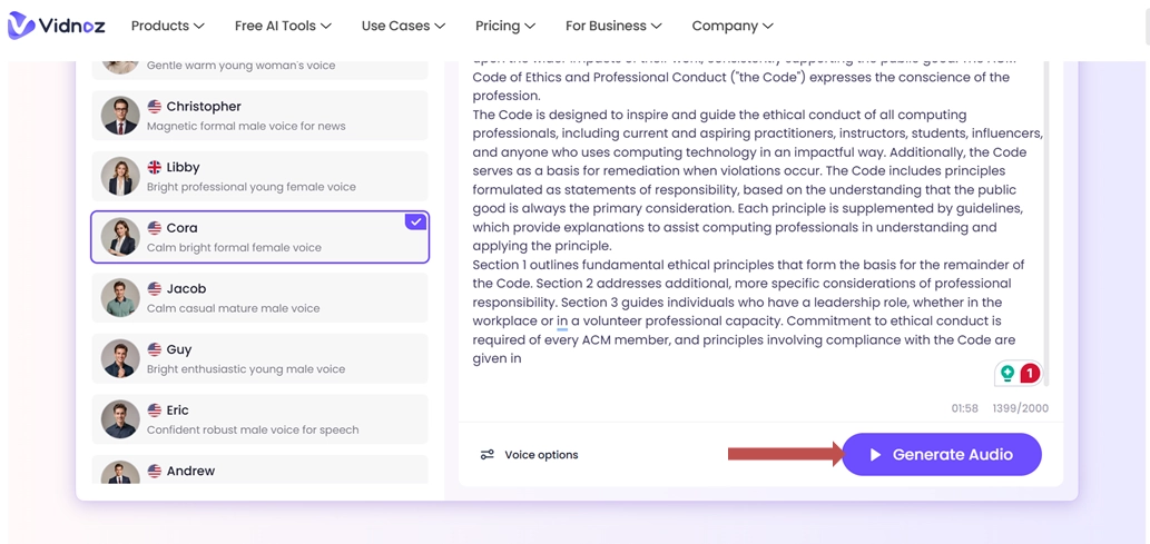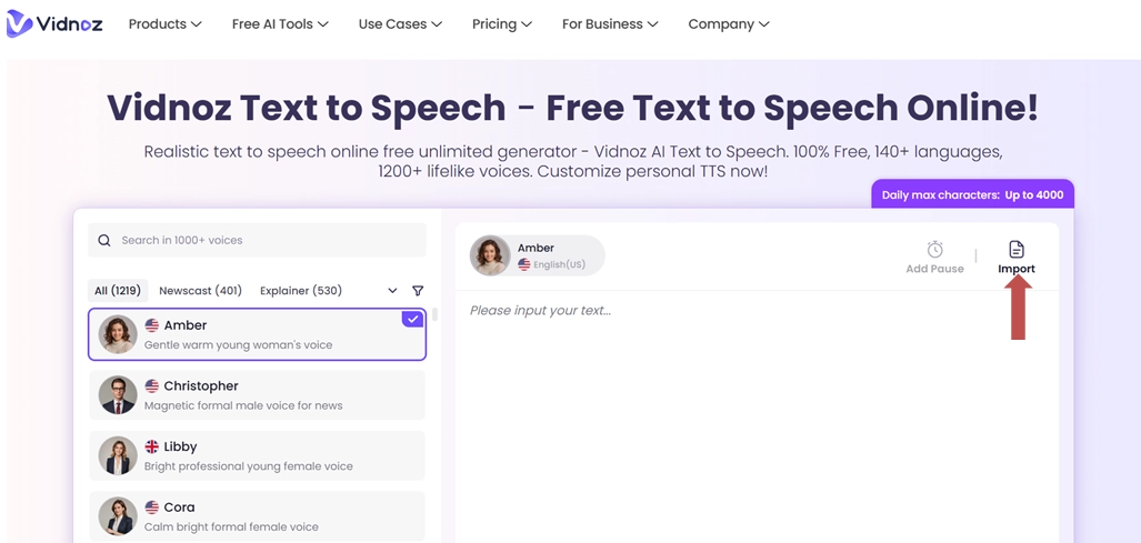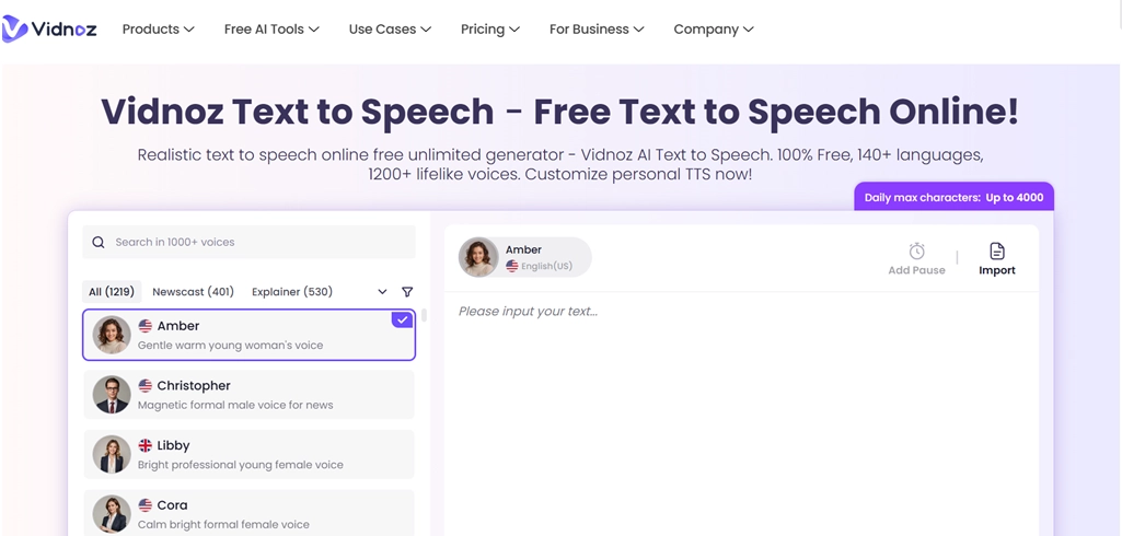 If you've encountered issues with Speechify not working, or find the free version limiting, Vidnoz AI Text to Speech is a powerful and free alternative worth considering.