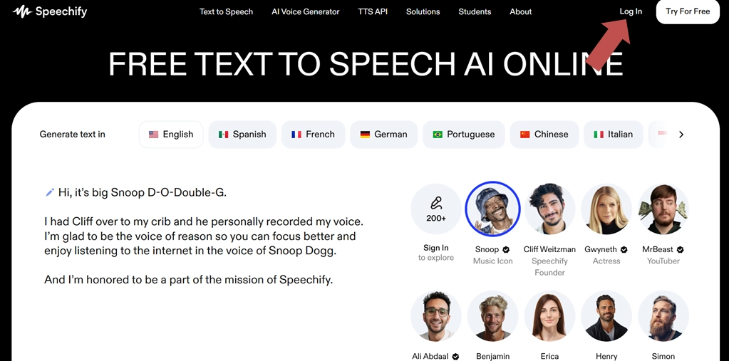 1. Sign Up: After navigating to the Speechify Text to Speech Online tool, create an account via the website or app.