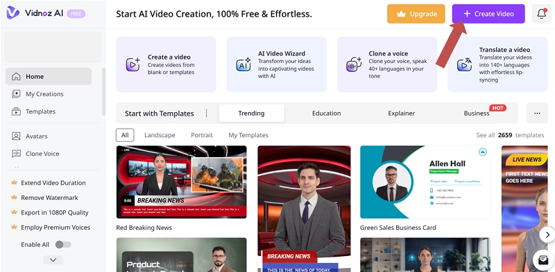 If you're looking forward to more custom options, Vidnoz AI, the integrated AI video platform, stands out as a more powerful option. Anyone can make desired AI videos on this platform, regardless of experience. Its intuitive design means you can skip the complex tutorials and jump right in.