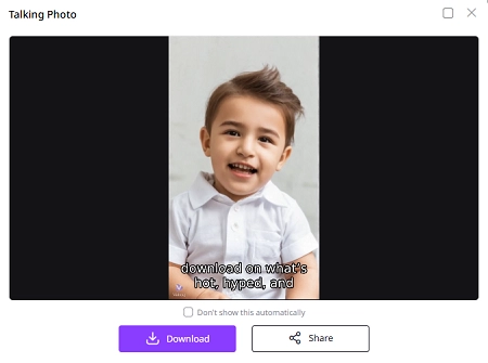 Finalize your settings and download the video by clicking on the Generate option at the top right corner. You now have your first talking baby animation ready to share!