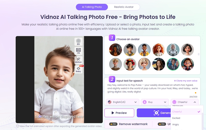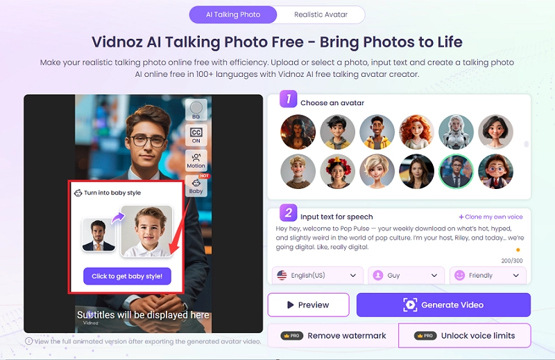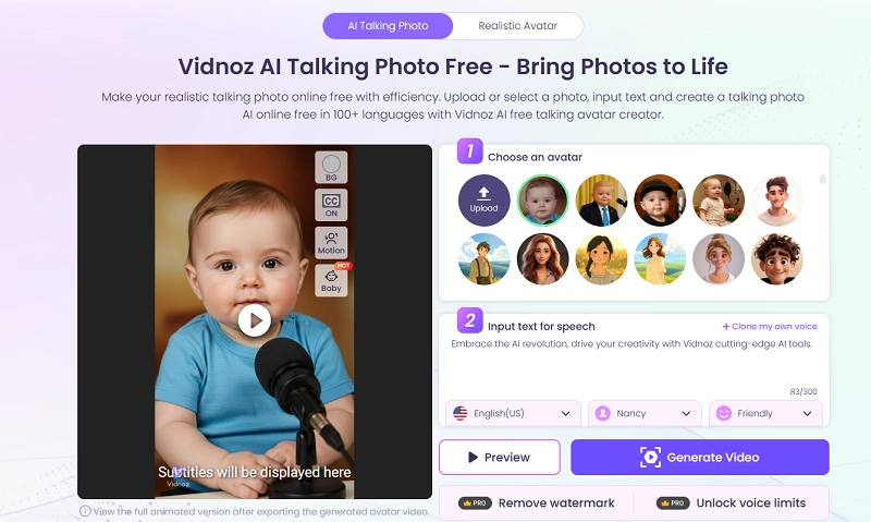 Free Online AI Talking Baby Generator: Vidnoz AI Talking Photo