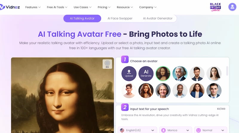 Konuşan bir köpek çok komik. Mona Lisa gibi konuşan bir portreye ne dersiniz? Vidnoz AI Konuşan Avatar ile kolayca oluşturulabilir. Vidnoz'un bu çevrimiçi aracıyla ilgi çekici bir hayali dünya yaratmak için portre fotoğrafları yükleyin ve özelleştirin.