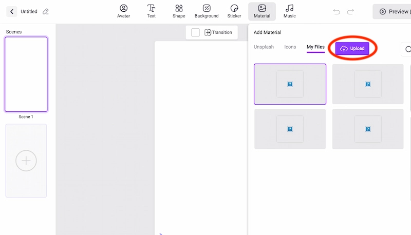Düzenleme sayfasına girmek için Video Oluştur'a tıklayın. Boş bir alan başlatmak için uygun bir tuval seçin.