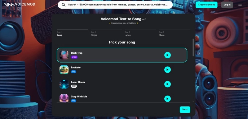 We've compiled a list of the greatest AI text to song free services and solutions on the market. They each have their distinct approach to empowering you to create creative music using AI. Let’s start with VoiceMod.