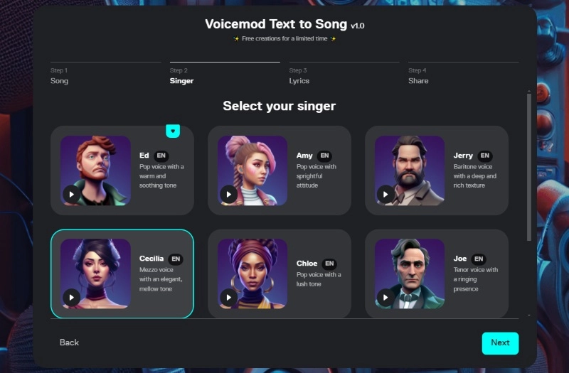 Step 3. Then, choose one of your favorite among 7 singers and go to the next step.