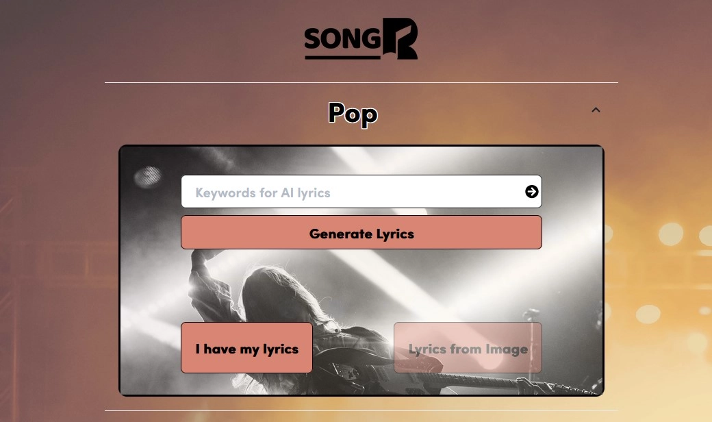 SongR AI is a fantastic text to song AI tool free that allows anybody to create their original lyrics and music easily. You won't believe how rapidly you can find music in minutes! What's more, SongR.ai provides a diverse choice of genres to pick from. They have something for everyone, whether you like pop, hip-hop, rock, or techno music.