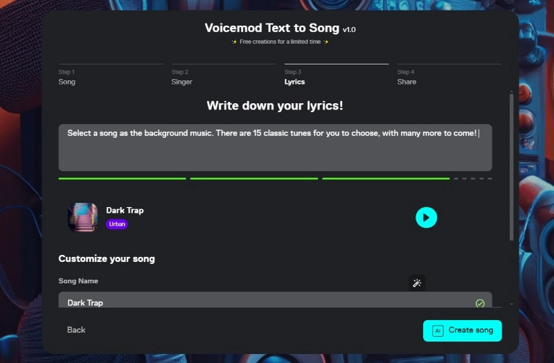 Lyric customization: Users can enter their own words, giving them complete creative flexibility.