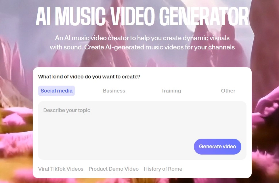 VEED is a versatile AI video creation platform. It introduces an AI music video generator that enables you to convert text to music with visual content in one click. It unblock the magic of AI to create short music videos for social media, business and more. What's more. VEED offers a royalty-free stock library that embraces a diverse of video and audio tracks helping you create music video more easily.