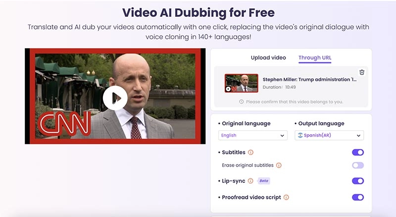 While AI has gained popularity in content creation, you can even translate a YouTube video to Spanish with algorithms. Here, Vidnoz AI Dubbing is the most powerful tool that can help you transcribe the entire YouTube video to another language with delicate and accurate lip-sync.