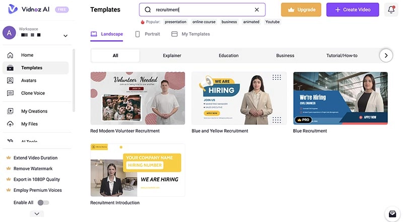 The 10 best recruitment videos above should be great examples of inspiration. Now it’s time to make your own. So how to create a video for recruitment easily, especially when you don’t have a big budget like those top brand companies? The answer is to use Vidnoz AI, an AI-powered video generator that allows you to create stunning videos with ease. In addition, you can try image animation, voice clone and many more fun tools, all provided by Vidnoz for free.
