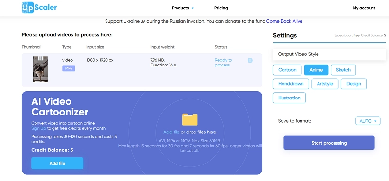 Although mainly dubbed as a cartoonizer tool, Image Upscaler is also capable of converting videos into anime. It is popular for the high conversion speed and simplicity. Whether you want to convert a video in AVI, MP4, or MOV, this video to anime video tool can handle it smoothly.