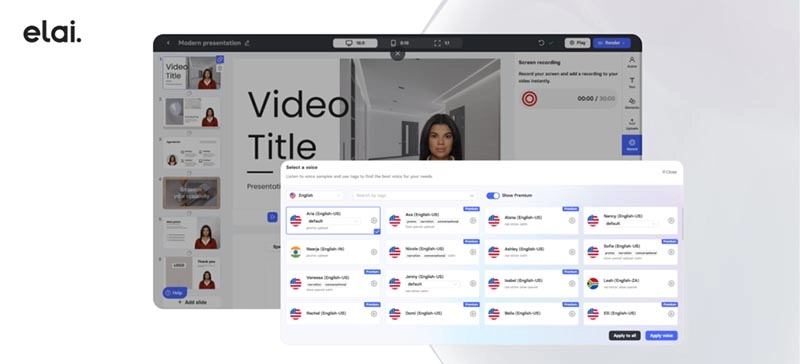 1,000+ Diverse Voice Avatars: With 1,000+ diverse AI-generated voice avatars, you can create incredibly lifelike and natural videos with ease.