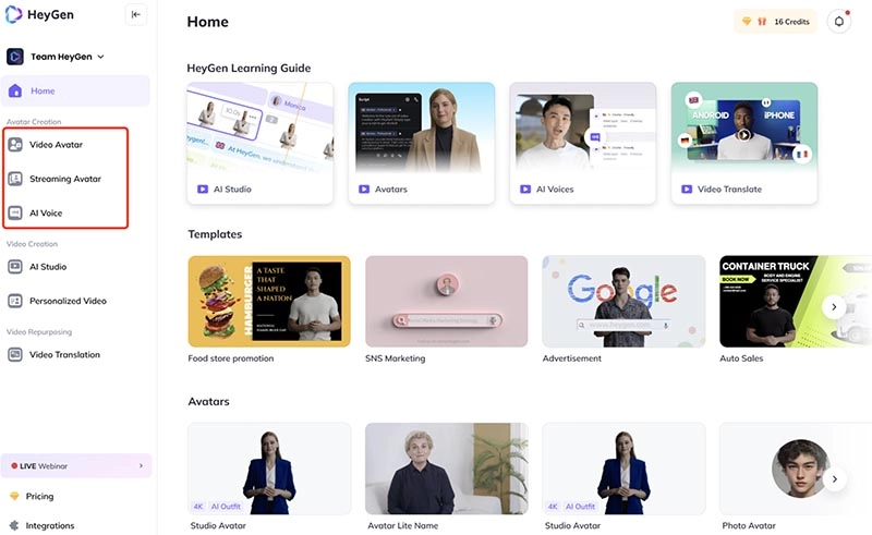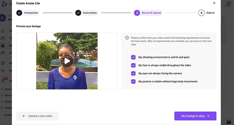 Step 2: Find Avatars on the side bar > Avatar Lite. Upload a high-quality, 1-minute speech video.