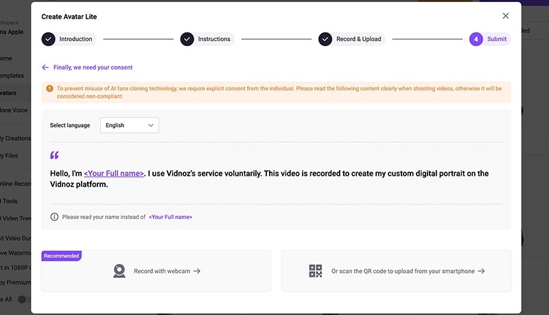 Step 3: Submit your consent and wait for 10 minutes, and you can have a video with a customized AI voice avatar in your voice.