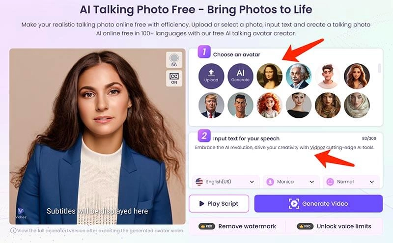 How to create an AI voice avatar fast and free? Vidnoz Talking Photo is the place to go. Developed with the latest AI algorithms, the voice avatar AI tool can help you make a realistic TTS talking avatar effortlessly.