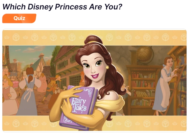 This part will introduce 3 types of quizzes: a Disney knowledge-based quiz, a personality-driven quiz, and a quirky quiz just for fun:
