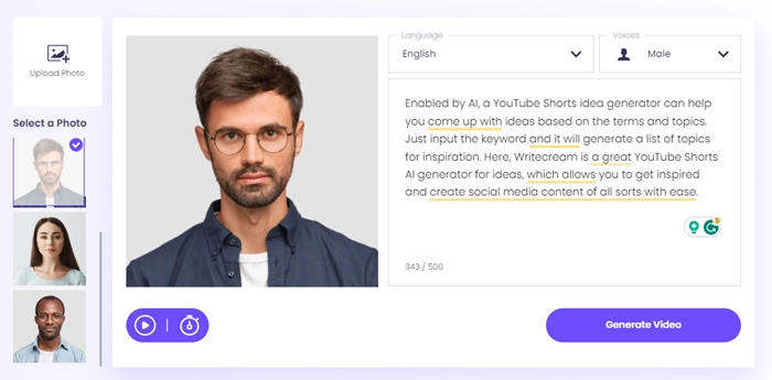 Adopting generative AI technology, Vidnoz Talking Head is a powerful YouTube Shorts AI generator that allows you to create a vivid talking avatar from a photo in one click, with the lips and gestures synced with the text and audio perfectly.