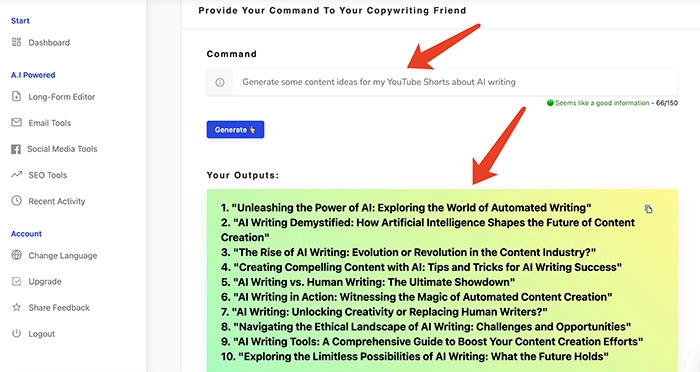 Enabled by AI, a YouTube Shorts idea generator can help you come up with ideas based on the terms and topics. Just input the keyword and it will generate a list of topics for inspiration. Here, Writecream is a great YouTube Shorts AI generator for ideas, which allows you to get inspired and create social media content of all sorts with ease.