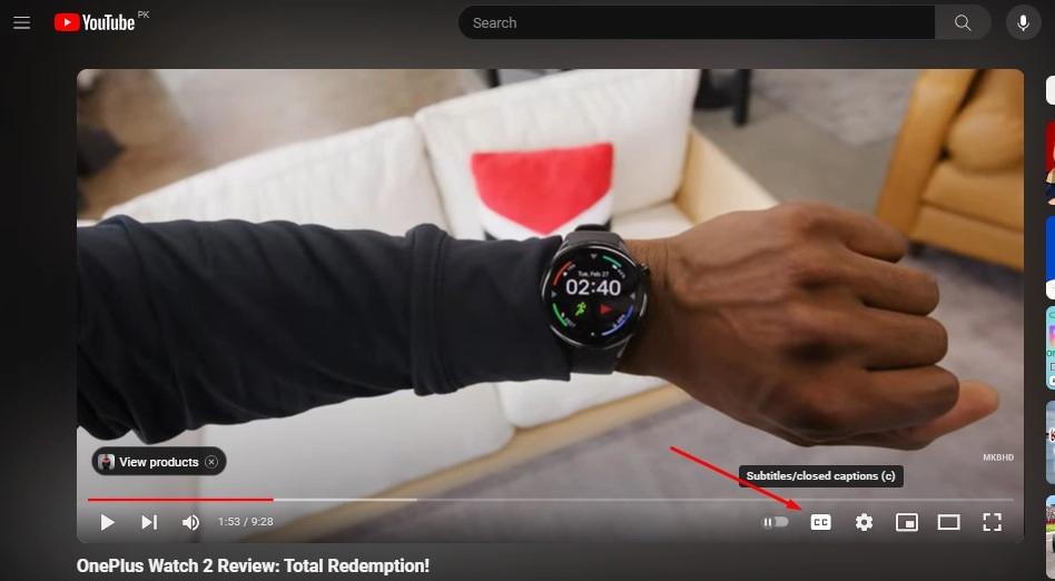 First of all, play any video you want to translate. Then, click on the "CC" button at the video player's bottom right corner.