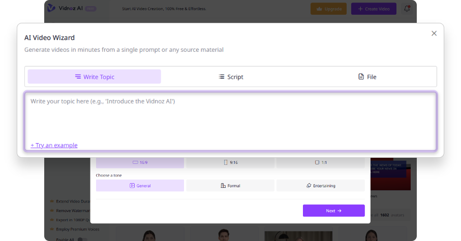 Can I Generate Videos Without Pre-written Scripts with Vidnoz AI Video Wizard?
