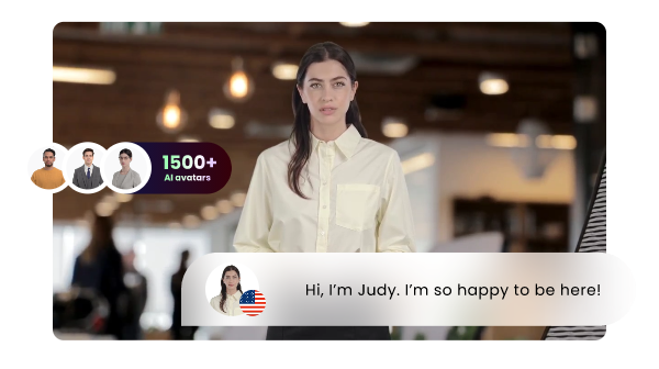 Add realistic AI avatars to deliver expressive and engaging content. No studio, no wait.