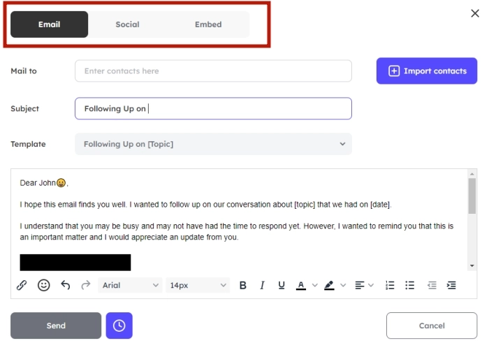 Click Share to send the videos via Email, Social or Embed. Furthermore, you can click Copy Link to share it as a link with others.