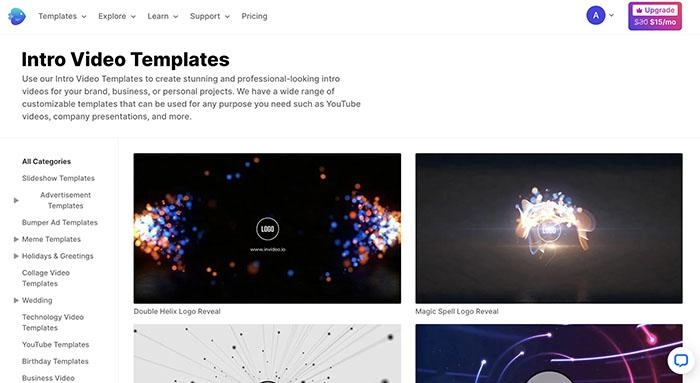 Widely recommended by many users, Invideo is another free intro maker for YouTube. The free intro maker video tool offers a wide range of templates and advanced editing features such as adding text to video, which can help you easily make stunning YouTube intros that are unique and eye-catching enough!