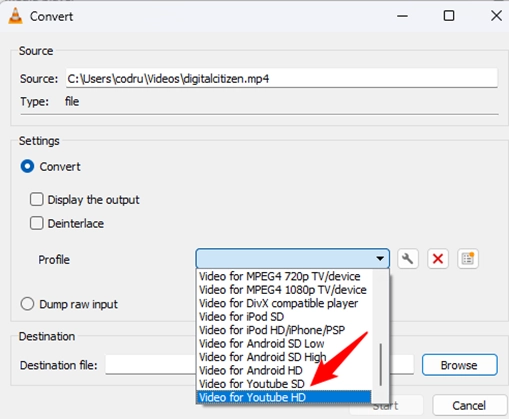 Step 3: You can compress your video file by choosing it from the profile dropdown menu.