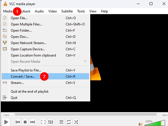 Step 1: Run the VLC media player, navigate to the Media menu, and then click or tap Convert / Save.