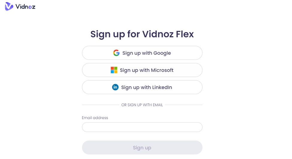 Step 1: Simply tap on the Vidnoz Flex App and sign in by using your Google, LinkedIn or Microsoft credentials to create a new account.