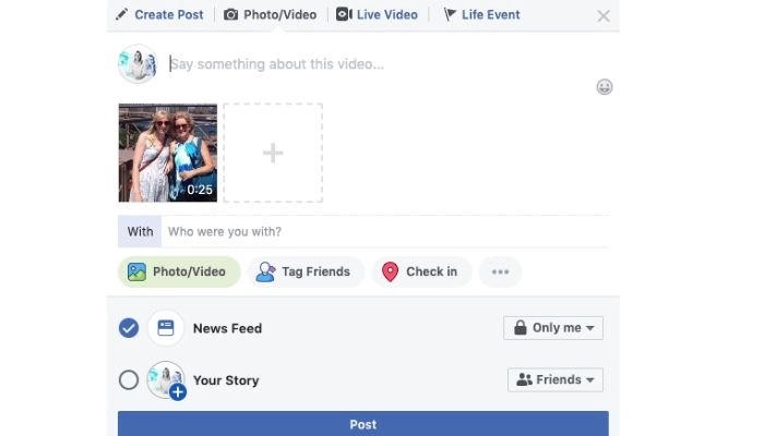 Facebook will start processing and uploading the video to your post as soon as you've decided which one to share. Add a caption, tag friends, and change the privacy settings as the video is uploaded to suit your tastes.
