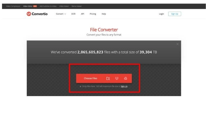 Locate the "choose files" on the Convertio Homepage. Select the video you want to upload from the device's storage.